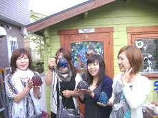 カッパーテープ(銅のテープ)が巻かれている数種類のガラス (ナギット)から好きな色のガラスを選びます。 |